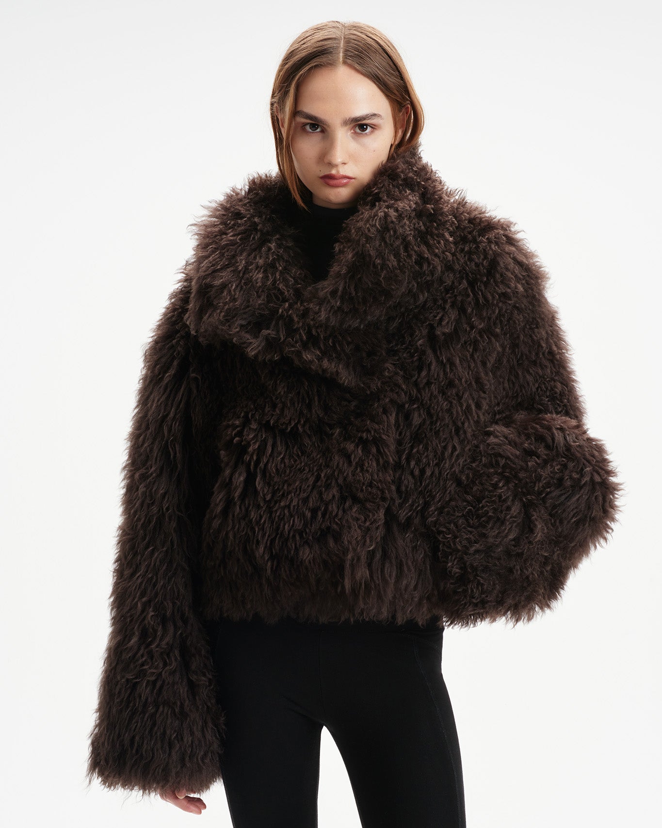 The Riley Shearling Jacket is the SSC Mongolian shearling jacket, mid-length with a suede finish on the inside.